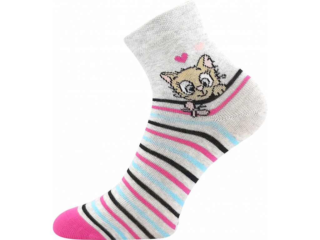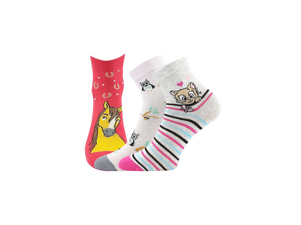 Dětské slabé ponožky Boma KAY jsou jako malá umělecká díla pro nohy vašich dětí. Plné nádherných barev a veselých obrázků, tyto ponožky přináší radost všem dětem, ať už jde o malé slečny nebo mladé pány. Střední výška ponožek sahá nad kotník, měkký pružný lem zajišťuje pohodlí a řetízkovaná špička, která netlačí, poskytuje maximální komfort. Tyto ponožky jsou ideální pro celodenní nošení a jsou nabízeny v mixu motivů.