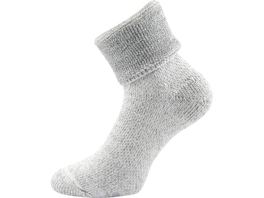 Dámské i pánské ponožky Boma POLARIS kombinují funkčnost s výjimečným komfortem. Silný froté úplet je mimořádně jemný na dotek a účinně zadržuje teplo, takže se teplé ponožky hodí perfektně na lenošení doma, sledování televize nebo práci z domova. Praktický ohrnovací lem vám umožňuje přizpůsobit výšku ponožek podle aktuální nálady – s neohrnutým lemem získáte ponožky klasické výšky, zatímco s ohrnutým lemem se z nich stanou středně vysoké ponožky. Extra jemný neškrtící lem s jemným svěrem zajišťuje, že ponožky drží na noze, ale zároveň nijak nestahují a podporují dobré prokrvení dolních končetin.